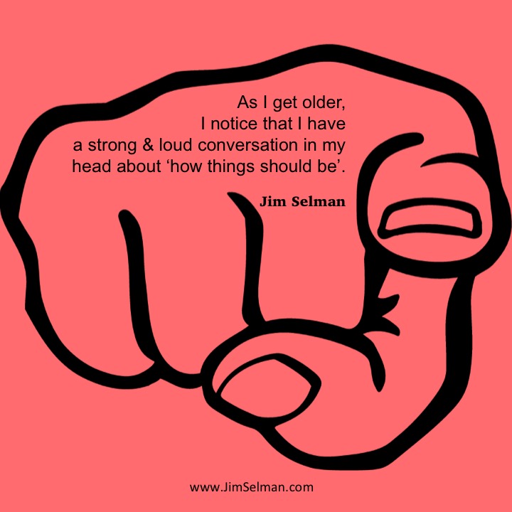 As I get older, I notice that I have a strong and loud conversation in my head about ‘how things should be’. Perhaps I’ve always had it. Lately, however, it has taken on the weight of authority and I find myself justifying my point of view because of my status as an ‘Elder’. I now expect that people will listen to me more because I have experience and my feelings are ‘right’—given my years. When things don’t go the way I think they should, I feel a growing sense of urgency to be heard and acknowledged for my interpretation of the situation and how others should see it. This kind of internal conversation might account for why so many older persons are feeling lonely, alienated and unhappy.