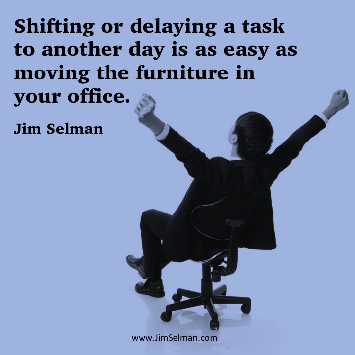 One of the first things that became obvious is that everyone has a conversation about procrastination. No one has ever said, “I always do what I need to do when I need to do it”. Furthermore, it is generally a negative self-assessment. I also haven’t heard anyone say “I am just fine and happy not doing what I know I need to do.“ There always seems to be some explanation or justification and most of us know that whatever our story, it is a pretty thin excuse. The excuse I hear most often is a variation of ‘it’s just the way I am’, which somehow seems to stop the conversation and kill any possibility of changing one’s practices. I am sure there must be some super-disciplined people who do manage themselves and their schedules so that everything they do is a conscious choice, but I think they are rare and the exceptions that prove the rule.